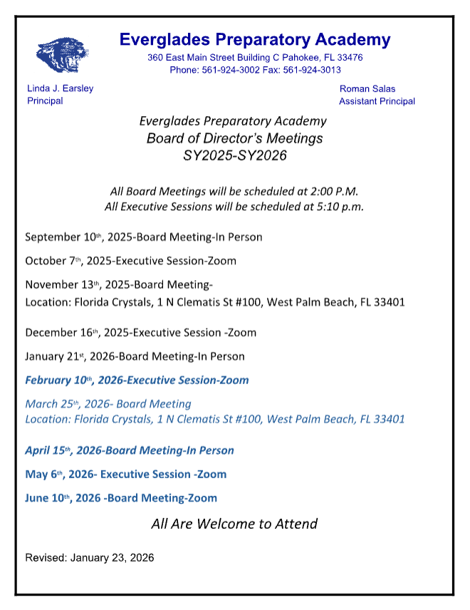 On behalf of Everglades Preparatory Academy, THANK YOU for your patience and support with the appellate process. Commissioner Anastasios Kamoutsas reviewed and granted the appeal. Everglades Preparatory Academy has earned a Commendable rating for the FY25 school year. We’ve earned 50% of the total points and tested 99% of your students.